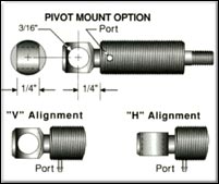 ports in line with the hole of the pivot or at a 90º angle. It's your choice.